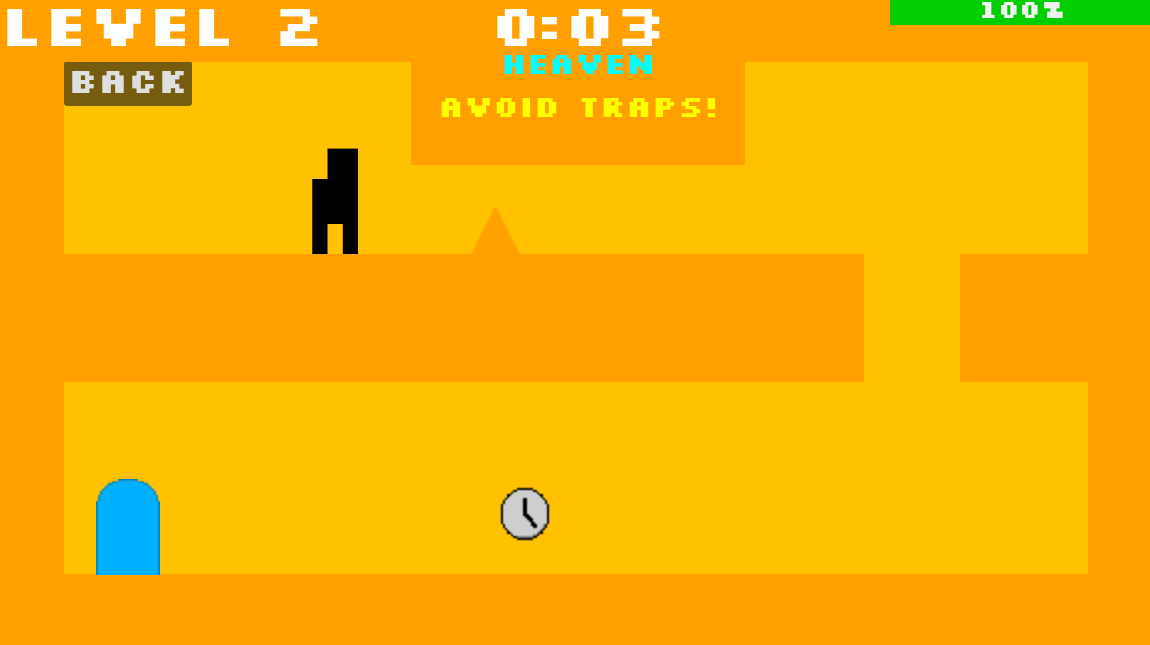 This game has a heaven/hell mechanic, where it switches between heaven and hell. When it's heaven, you avoid traps